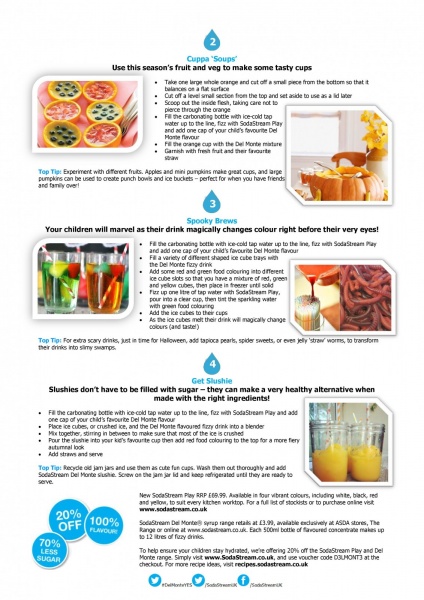 Sodastream have sent this fab infographic with ideas on how to make your carbonated drinks extra special.  I am definitely going to try out the spooky brews for Halloween!Sodastream